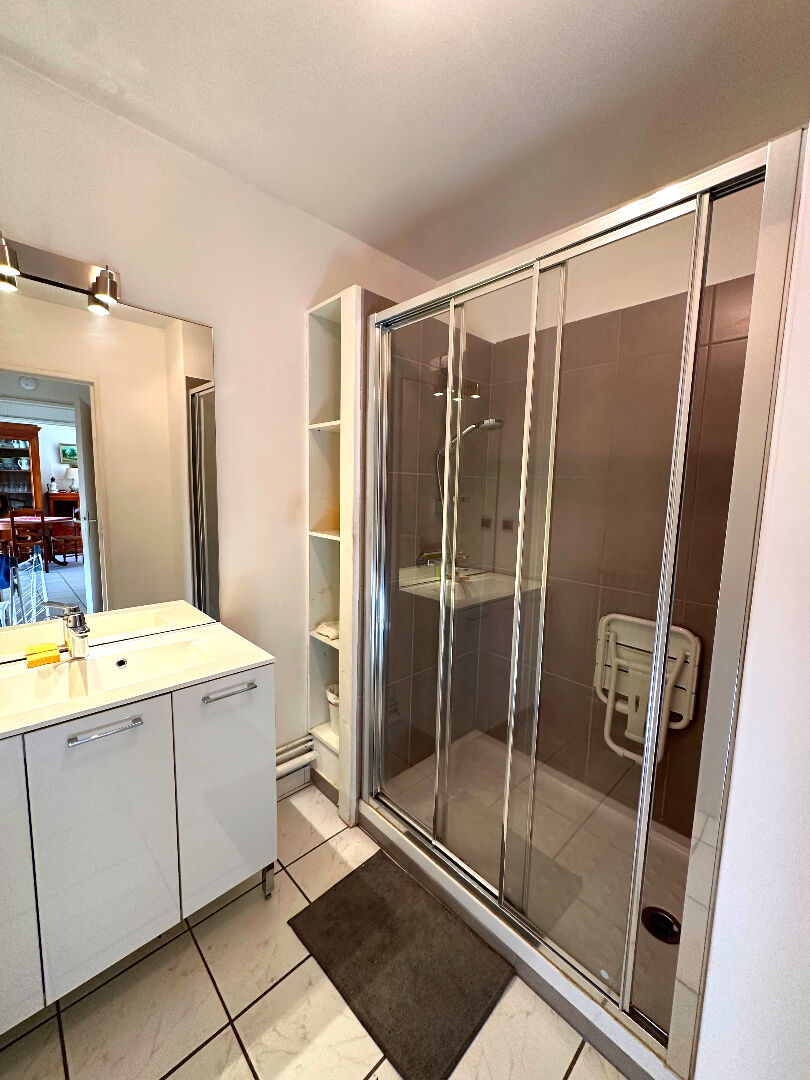 D'une surface de 49m², vous y trouverez un séjour avec espace salle à manger, une cuisine indépendante qu'il est possible d'ouvrir sur le séjour, une chambre avec placard, une salle d'eau avec une grande douche et un WC.