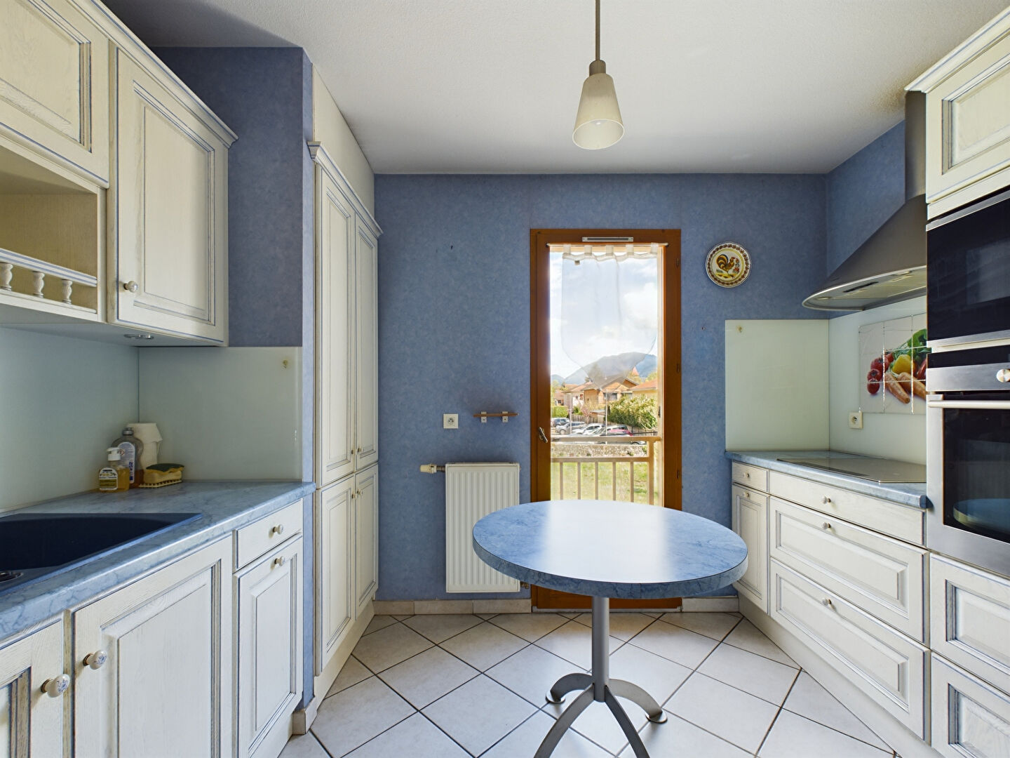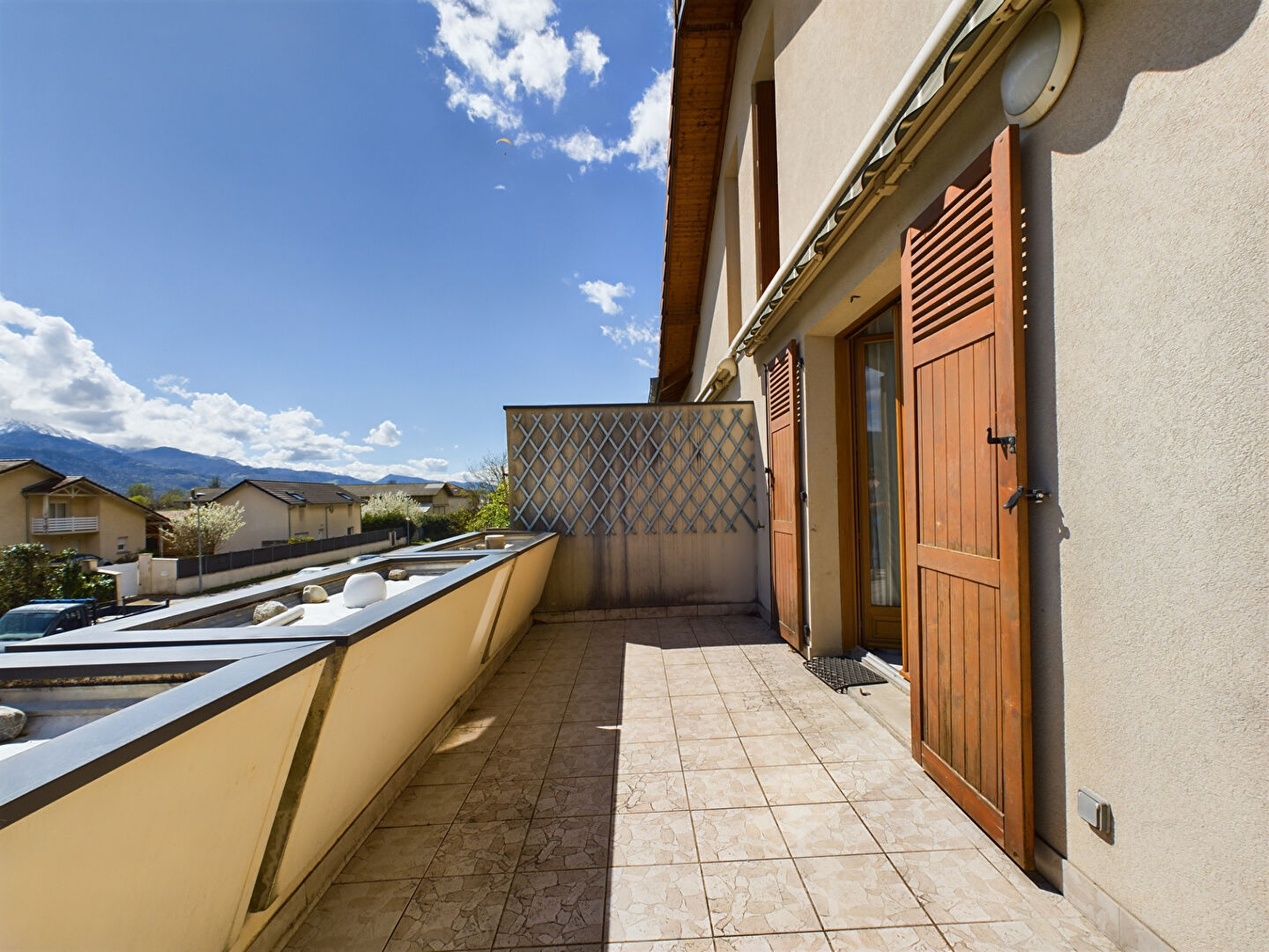 Également à ce niveau, vous trouverez une agréable pièce à vivre de près de 25 m² ouverte sur la belle terrasse offrant une magnifique vue dégagée sur Belledonne, une cuisine indépendante, une petite buanderie et des wc séparés.