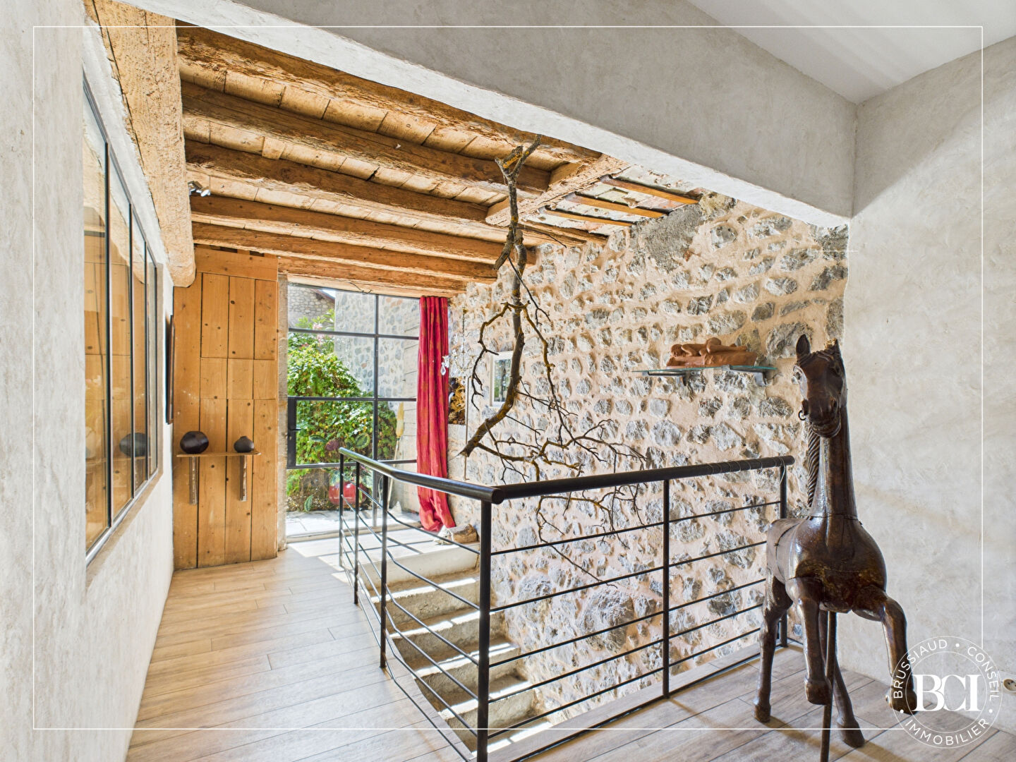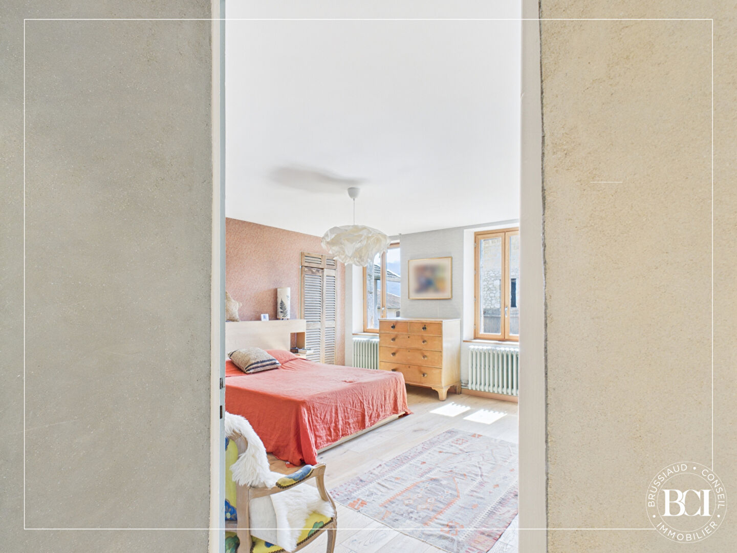 Brussiaud Conseil Immobilier vous présente ce bien atypique : une superbe maison de 173 m², nichée dans une bâtisse de village au charme de l'ancien, entièrement rénovée avec goût.