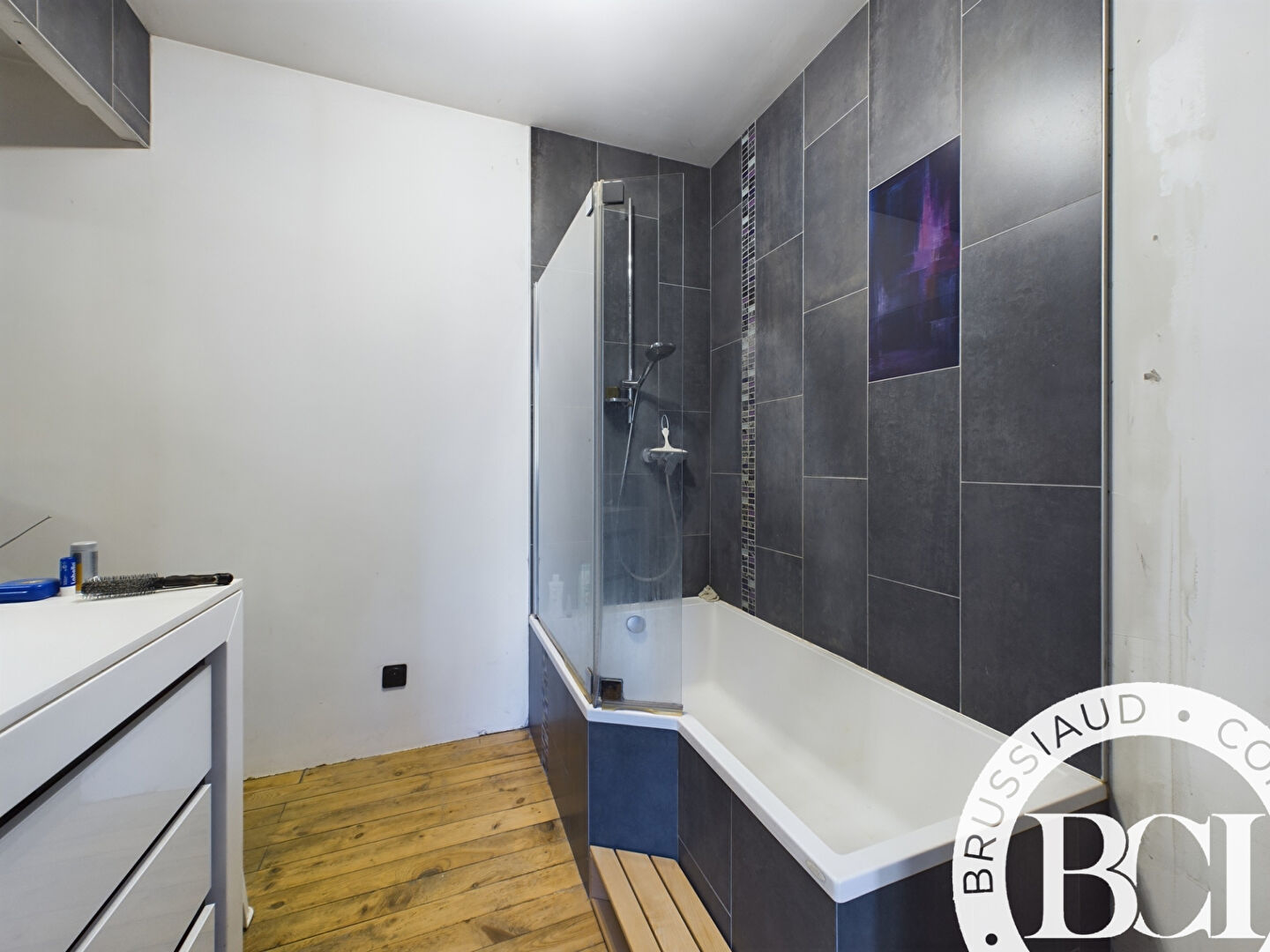 A l'étage, deux grandes chambres dont une avec dressing, une salle de bains avec baignoire et wc.