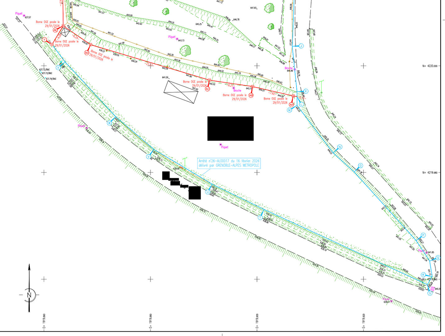 Reculs obligatoires : 5 m par rapport à la voirie et 3 m en limite de propriété.